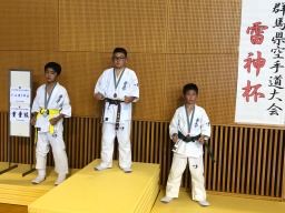 群馬県大会〜雷神杯〜 2022年5月29日 群馬県大会〜雷神杯〜5月29日 群馬県大会~雷神杯~が行われました。 君島 陽起 選手 小学4・5年生 緑帯以上型の部 銅賞 沼野井 琉煌 選手小学4年生体重別総当り戦優勝 沼野井 琉煌 選手小学4年生組手の部準優勝 川上 昊祥 選手小学5年生体重別総当り戦3位